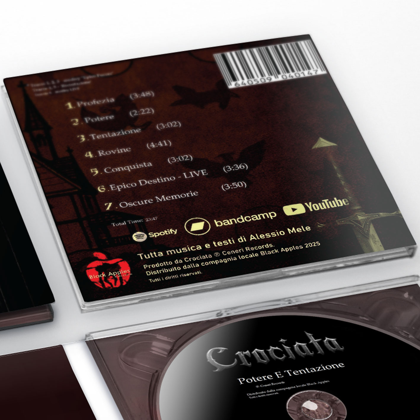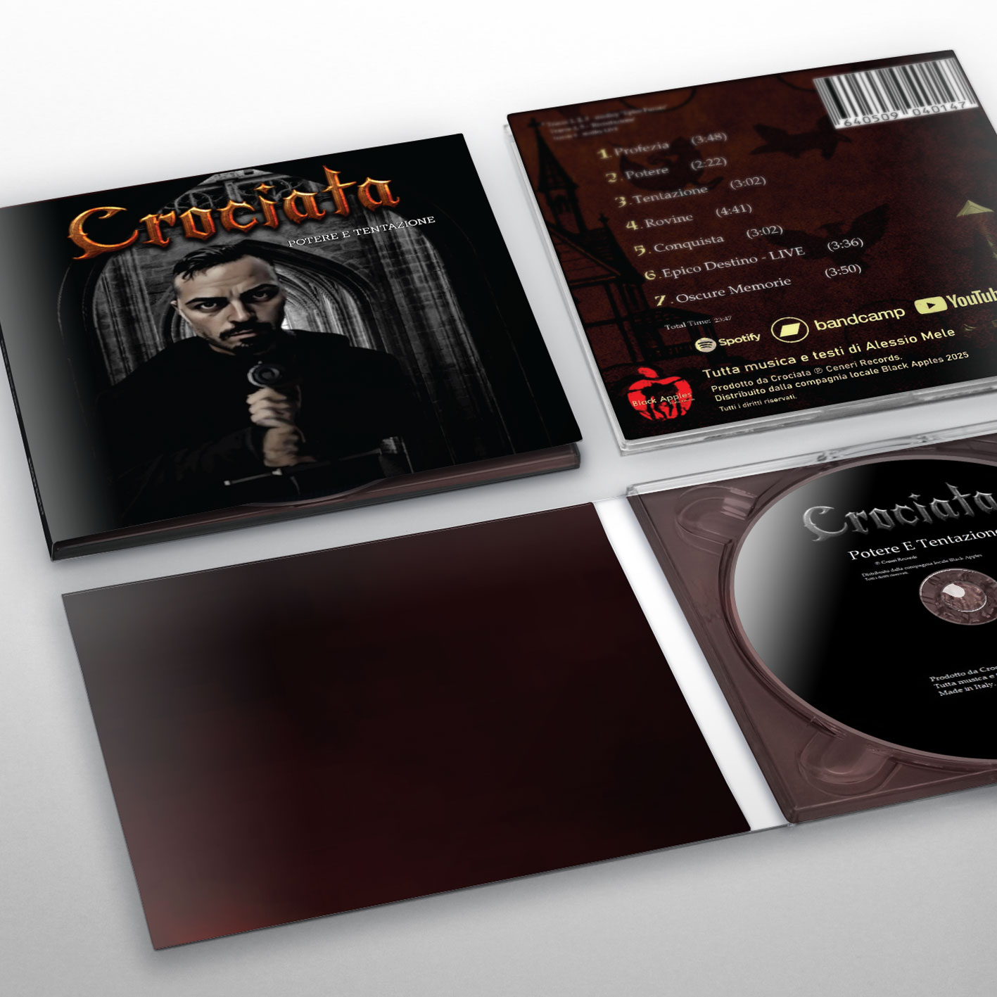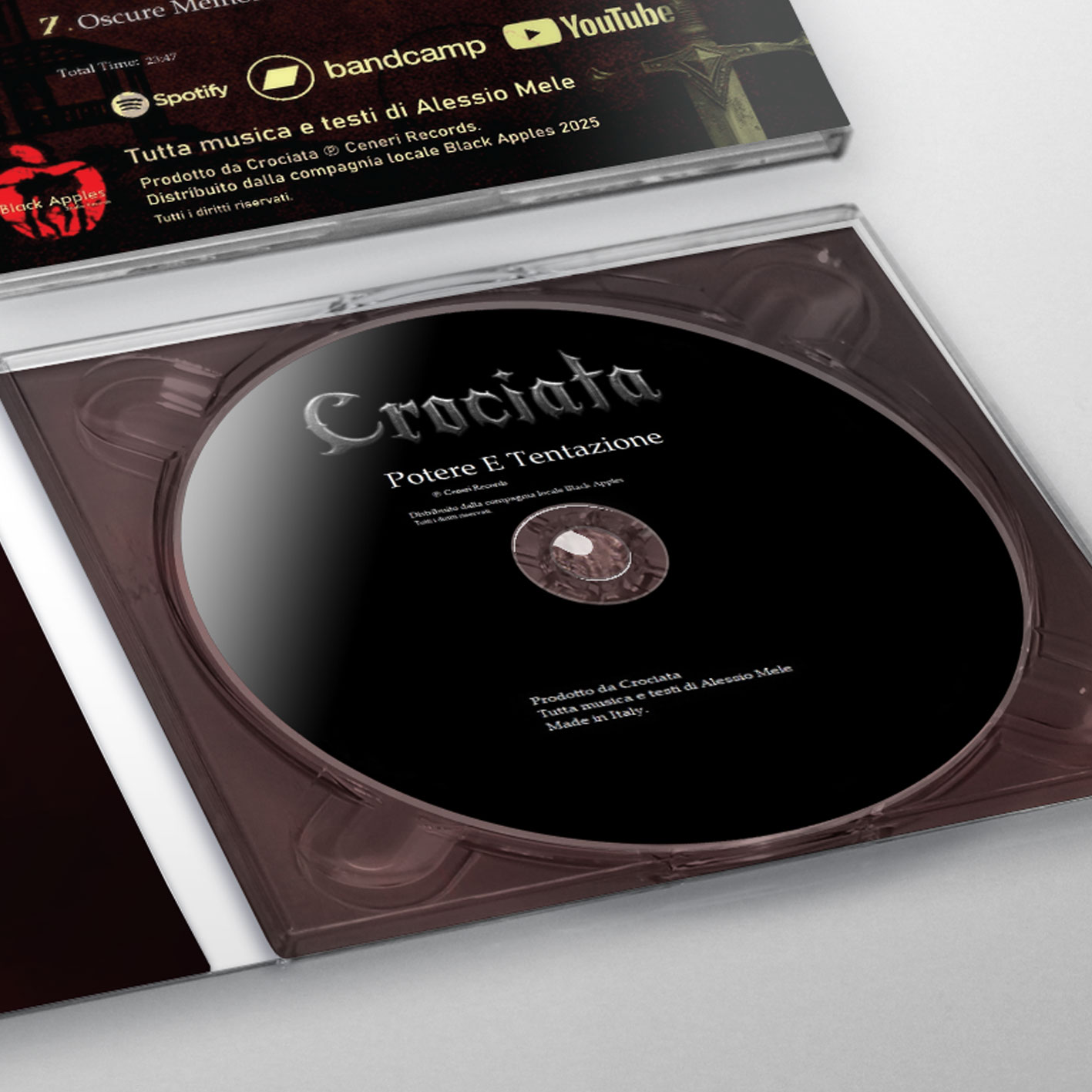 CROCIATA Testi e musica di Alessio Mele Crociata è un progetto solistico musicale italiano Heavy Metal di Alessio Mele fondato nel 2024. Audio format: CD-R Packaging: digipack Courier: international tracked postal service Delivered: estimate 5-25 business days worldwide Shipping by CDClick