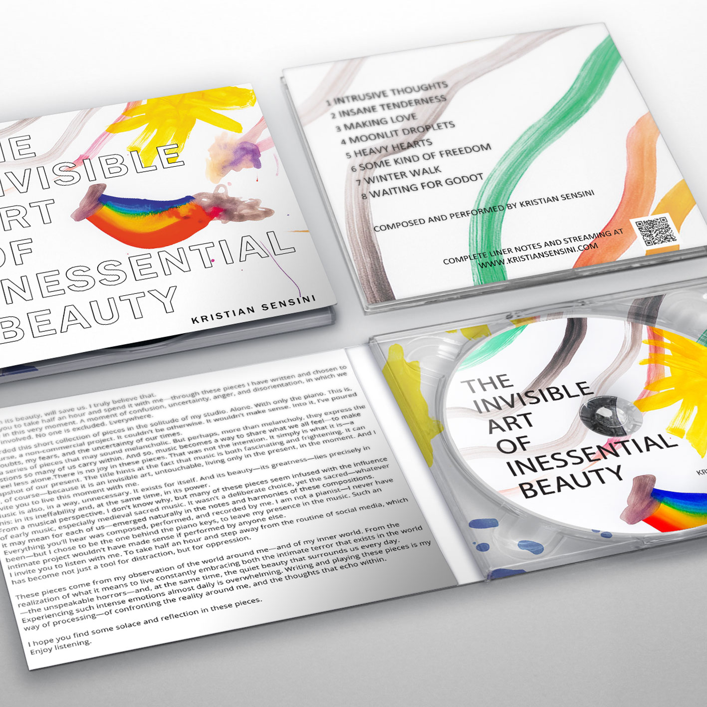 Kristian Sensini THE INVISIBLE ART OF INESSENTIAL BEAUTY Audio format: CD-R Packaging: Digipack Courier: international tracked postal service Delivered: estimate 5-25 business days worldwide Shipping by CDClick